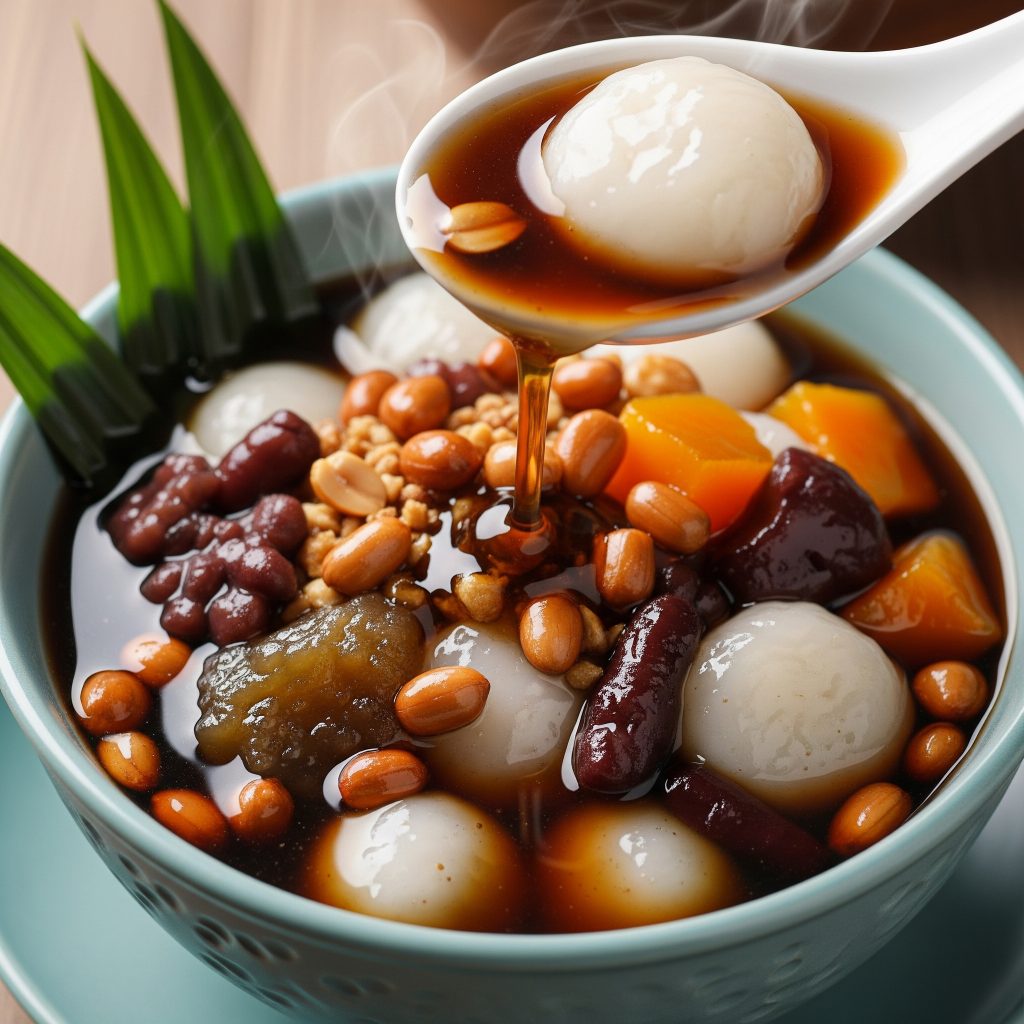 6. Ronde Sekoteng Jago Saat udara sejuk Salatiga menyelimuti, semangkuk Ronde Sekoteng Jago adalah pilihan yang sempurna untuk menghangatkan tubuh. Minuman ini berisi bola-bola ketan kenyal (ronde), kacang tanah, kolang-kaling, manisan buah, dan terkadang roti, disiram dengan kuah jahe manis yang hangat dan segar. Ronde Sekoteng Jago telah berdiri sejak tahun 1964 dan terkenal akan cita rasa otentiknya yang tetap terjaga.
